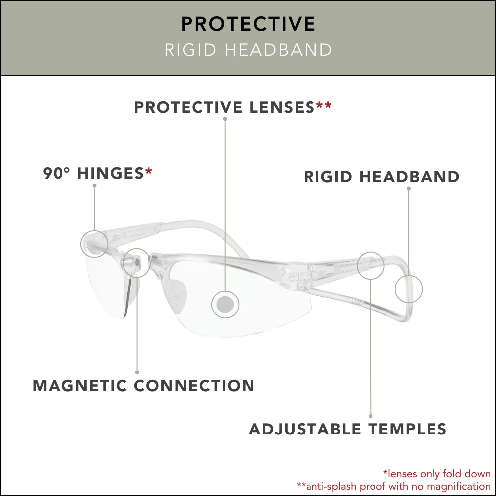 CliC Protective features 100% UV Protection with anti-glare, anti-fog and anti-scratch coatings. Designed for anti-splash protection. Not OSHA Compliant.