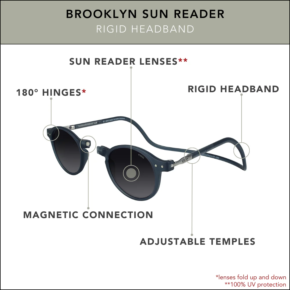 THE BROOKLYN. The Brooklyn's trendy oval design allows for a larger field of vision with their full sun reader lens magnification and 100% UV protection.