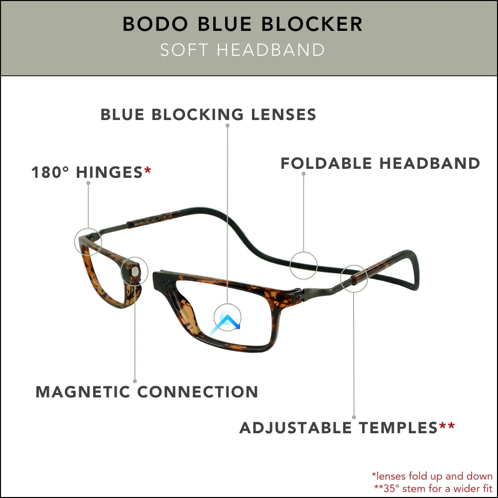 The Bodo style is ideal for users with a "larger head" thanks to the extra wide metal temples. Features a soft and foldable headband that adjusts at the temples providing you with a perfect fit.